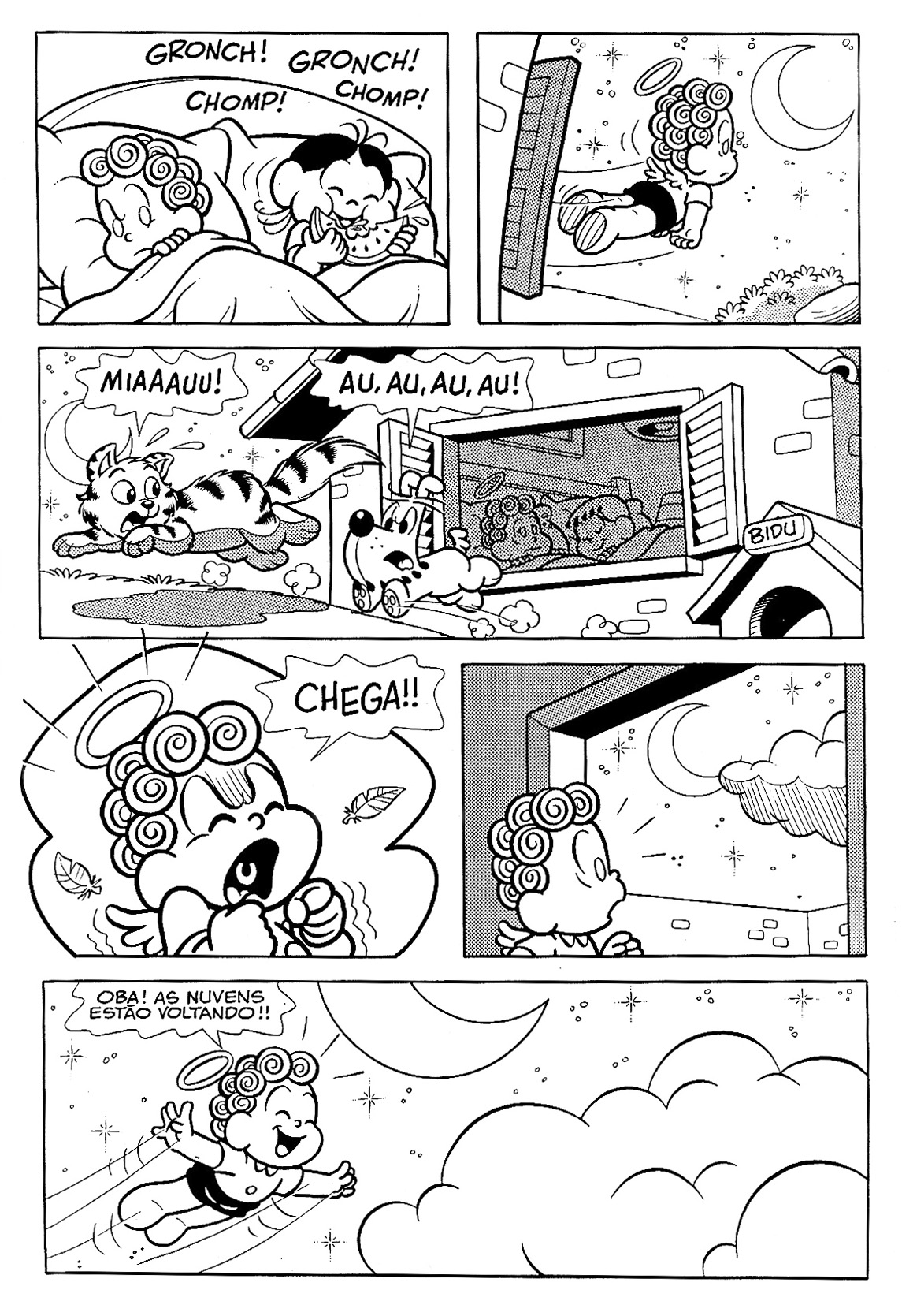 Revista em quadrinhos da Turma da Mônica - Anjinho. Arte-final feita por mim com bico de pena e nanquim. Desenho de Júlio César e arte-final minha. 1990.
