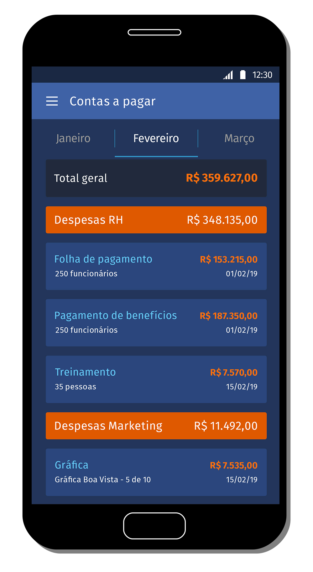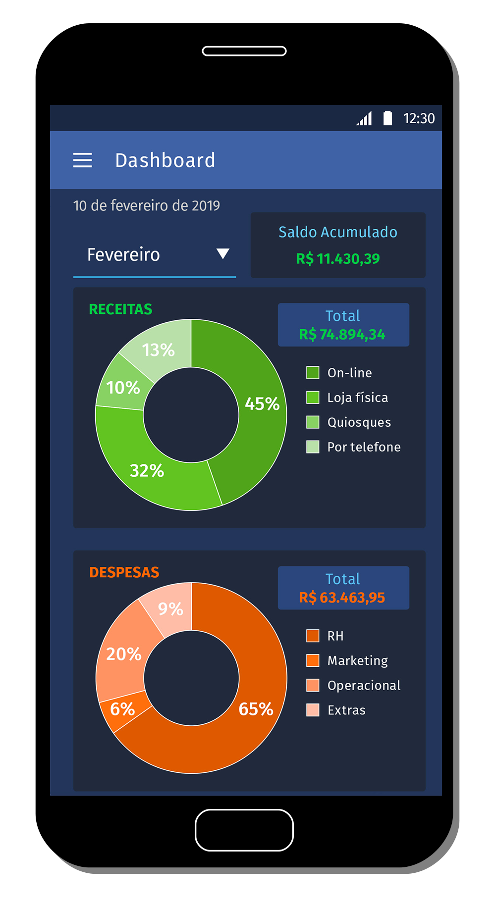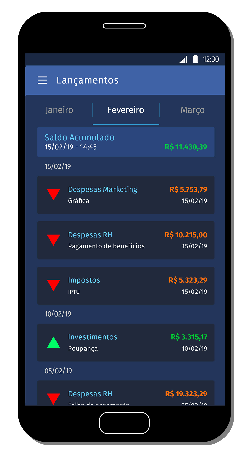 Estudo de aplicativo sobre fluxo de caixa utilizando Photoshop, Illustrator e prototipado no Invision.